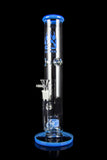 This awesome bong features matching color accents on the flared mouthpiece, base, and perc and a Calibear logo on the front. There's even an ice pinch built into the straight tube that allows you to add a frosty edge to your hits.