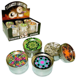 Metal 3-Piece Grinder with Black-light Designs - 12 Pack