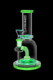 The water pipe has a straight body with a wide base for stability and greater water capacity. The green color accents are UV reactive for a cool effect when paired with black light. Equipped with a showerhead percolator for smooth hits, this pipe is easy to use and carry being only 7.5 inches tall. Shipped with a matching herb slide.