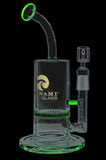 This beautiful rig is adorned with a Tsunami Glass logo and has color accents that really pop on the base, perc, reinforced downstem attachment, and the mouthpiece rim. It would make a great addition to a growing glass collection and an excellent daily driver that consistently delivers flavorful and smooth rips that bring out the best in your favorite concentrates.